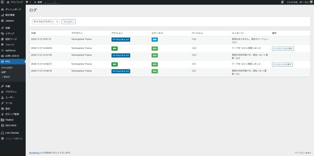 プラグイン/テーマを問わず、更新履歴・エラー情報を統合的に管理できます。