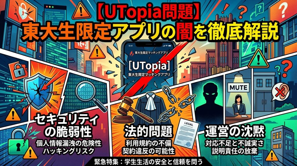 【UTopia炎上】東大生限定マッチングアプリのセキュリティ欠陥・法的問題・運営の沈黙まで徹底解説