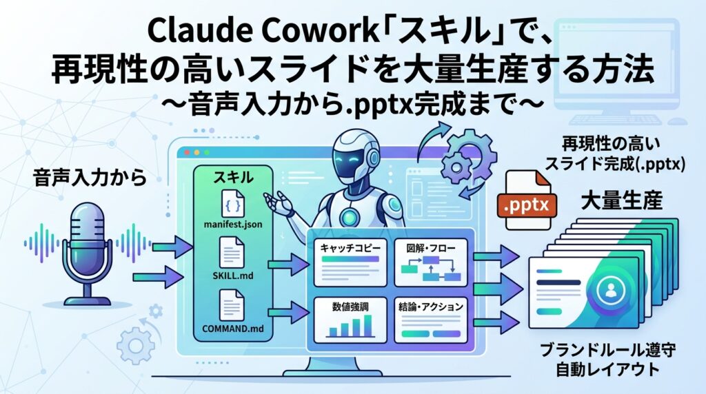 Claude Coworkスキルで「再現性の高いスライド」を量産する方法|音声入力から.pptx完成まで